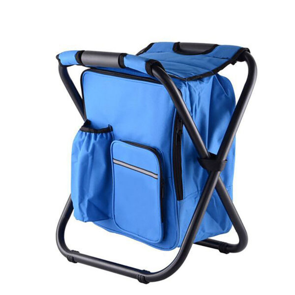Cooler chair: folding stool with backpack cooler bag, steel tube, 600D oxford. Perfect for outdoor activities.