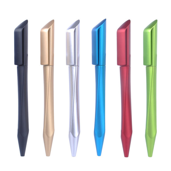 Crafted from durable ABS material and coated with a sleek spray paint finish, this pen’s ergonomic triangular design provides utmost comfort. Simply twist the top to retract or extend the pen, and choose from either black or blue ink for your writing needs.