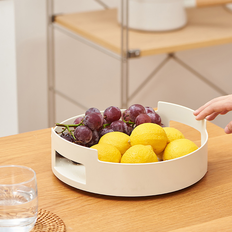 Constructed from strong BPA-free plastic that is resistant to shattering and is safe for food, this lazy susan organizer features durable stainless steel ball bearings. It can be easily cleaned with mild soap and water, but is not dishwasher safe. Perfect for storing various items such as vitamins, medicines, spices, oils, and baking supplies. The clear design allows for quick identification of contents, making it ideal for organizing makeup and cosmetic products. This versatile organizer can also be used as a spinning tray in the kitchen, plastic container in the fridge, or storage bin in the pantry or bathroom. Suitable for storing a variety of items such as fresh fruit, vegetables, juice, yogurt, jars, snacks, drinks, cookies, masks, lotions, and foams. Keep your kitchen clutter-free with this multipurpose organizer.